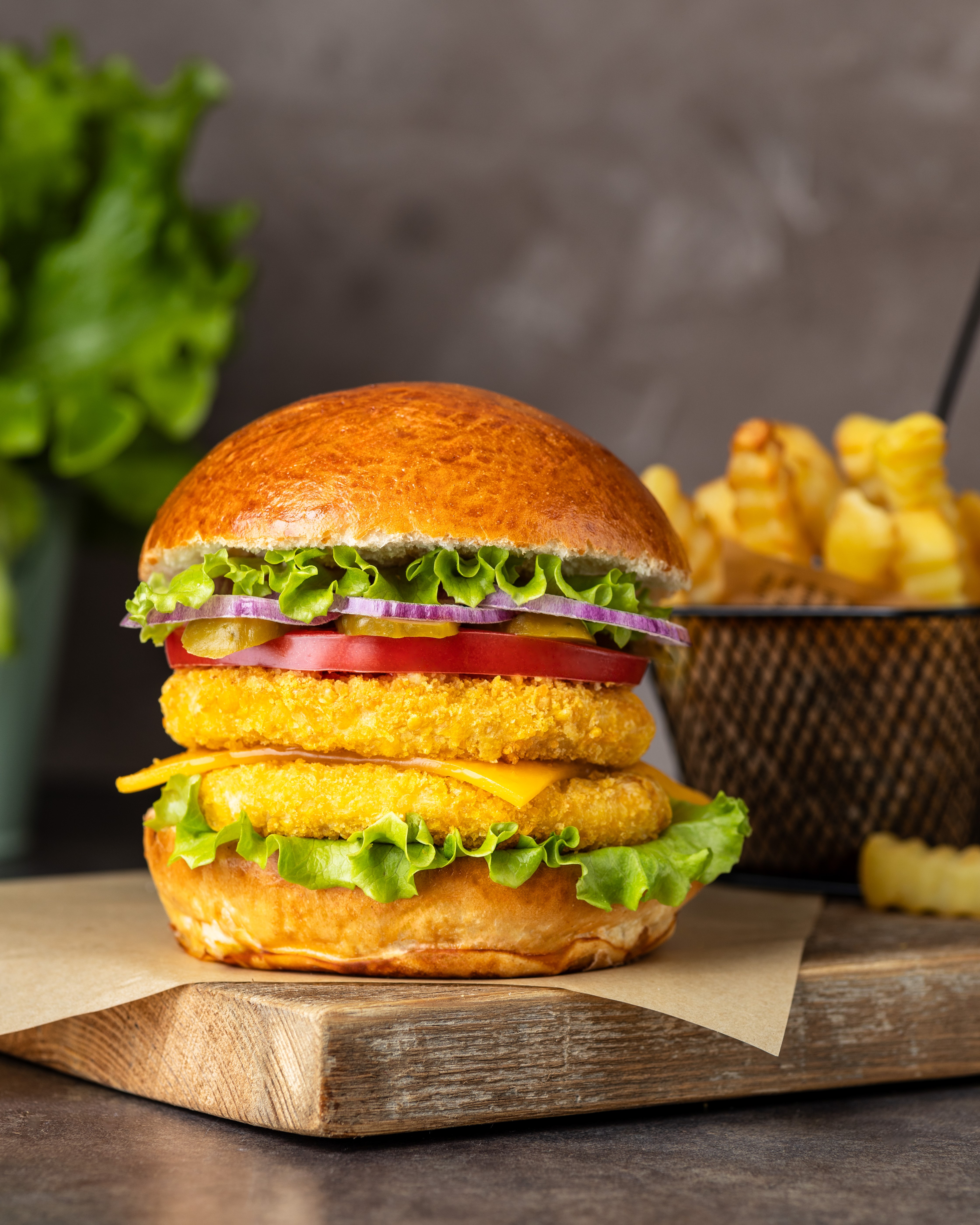 To burger, który wyróżnia się nie tylko smakiem, ale też wyglądem. Powstaje z krojonej piersi kurczaka, formowanej w kotlet o idealnej gramaturze, co gwarantuje powtarzalność i wygodę w profesjonalnej kuchni. Każdy kawałek otula chrupiąca panierka z widocznymi płatkami kukurydzianymi, które po wypieczeniu stają się złociste i apetyczne. W środku mięso pozostaje miękkie i soczyste, a całość tworzy produkt, który świetnie sprawdzi się w burgerowniach, restauracjach i cateringu.